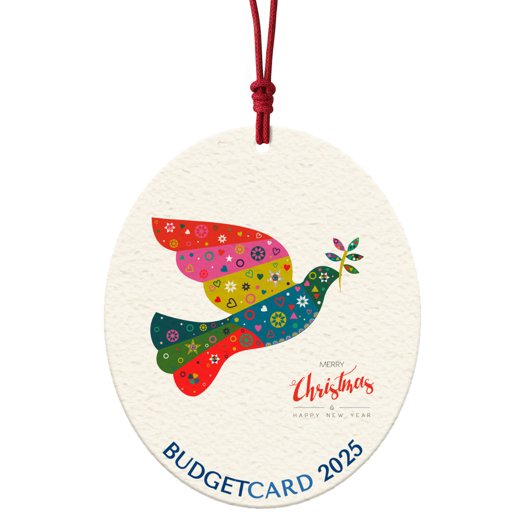Each ornament features a convenient top pinhole for effortless hanging. Elevate your presentation with a beautifully crafted custom rectangular display card with a thumb slot to showcase the ornament.